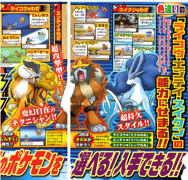 Os cães lendários são eventos que serão distribuídos no percurso do filme 13 de pokémon.